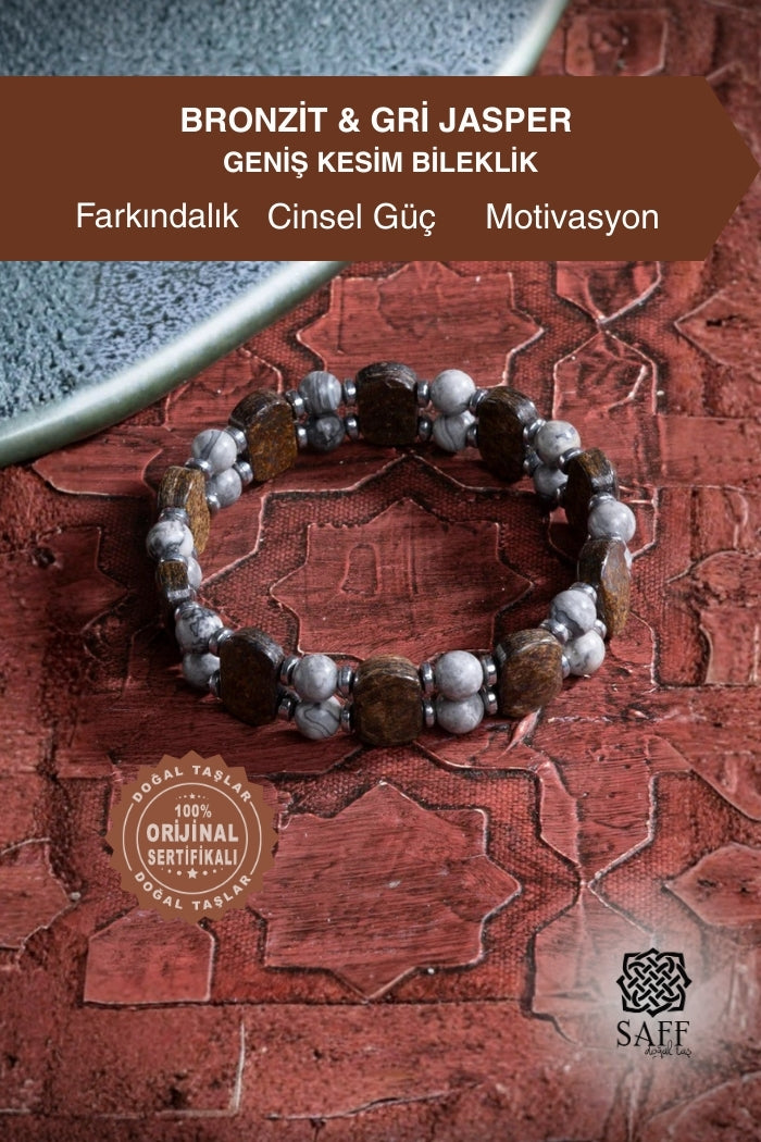 Bronzit & Jasper & Hematit Geniş Kesim Bileklik
